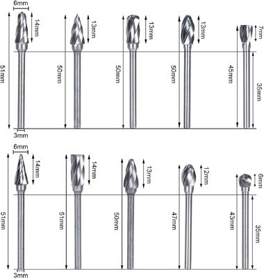 This professional 10-piece tungsten carbide rotary burr set features 1/8" shank diameter and is designed for precision metal polishing, woodworking, and engraving applications. Made from high-quality tungsten carbide with steel shanks, these burrs deliver exceptional performance and durability.